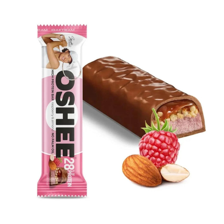اكتشف أوشي بروتين بار الخالي من السكر بنكهة التوت واللوز بوزن 45 جرام. هذا البار المصمم بعناية يمنحك دفعة بروتين مركزة مع طعم توت ولوز غني يحافظ على توازنك الغذائي أثناء اليوم أو أثناء التمرين.