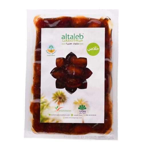 • ما الذي يُميّز تمر خلاص عضوي من مزرعة الطالب؟ يتميز بجودته العالية، ونكهته الطبيعية اللذيذة، وكونه عضويًا مُعتمدًا، بالإضافة إلى أنه من إنتاج مزارع القصيم المعروفة بجودة تمورها.