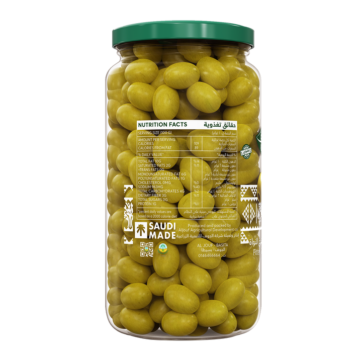 - الوصف: زيتون أخضر عضوي منزوع النواة من الجوف، يتميز بطعمه اللذيذ والغني. يتم اختيار الزيتون بعناية ويتم نزع النواة منه ليكون جاهزًا للاستهلاك.